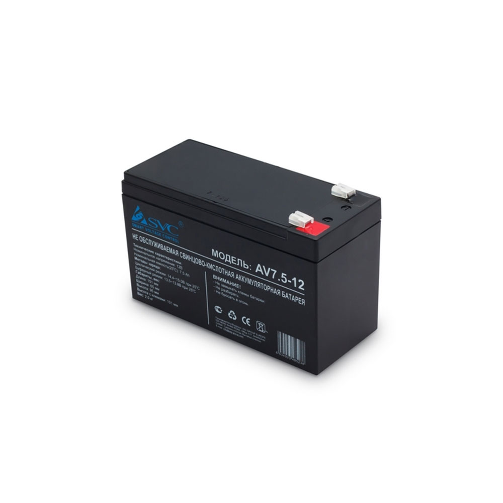 Батарея, SVC, AV7.5-12/S, Свинцово-кислотная 12В 7.5 Ач, Вес: 2,2 кг, Размер в мм.: 151*65*100