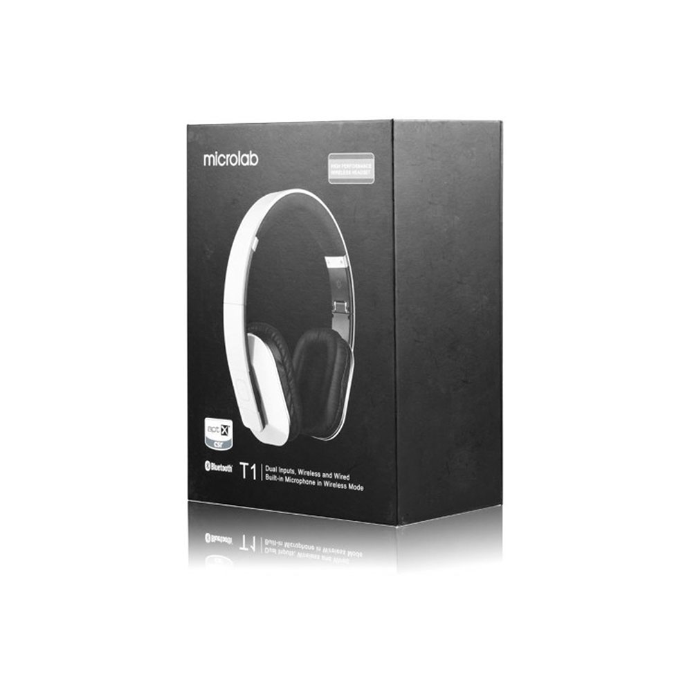 Беспроводные наушники, Microlab, T1, Bluetooth V4.0, A2DP1.2/AVRCP1.4/HSP1.2/HFP1.6, Литий-полимерная батарея, 195мАч, До 14 часов воспроизведения музыки, Встроенный микрофон, Белый