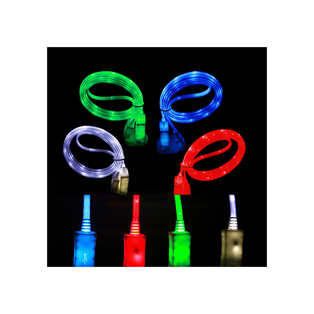 Кабель USB шнур светящийся MICRO белый, желтый, синий, красный