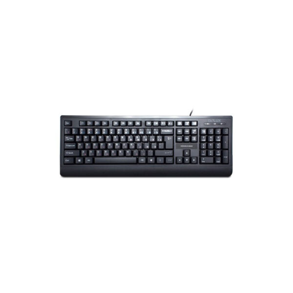 Клавиатура, Delux, DLK-02UB, USB, Кол-во стандартных клавиш 102, 10 мультимеда-клавиш, Размер: 436,9*159,9*27,4 мм., Длина кабеля 1,4 метра, Анг/Рус/Каз, Чёрный
