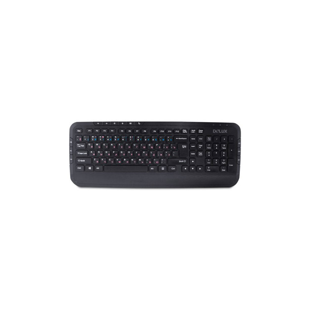 Клавиатура, Delux, DLK-160UB, USB, Кол-во стандартных клавиш 103, 12 мультимедиа-клавиш, Размер: 435.4*172*26,8 мм., Длина кабеля 1,4 метра, Анг/Рус/Каз, Чёрный