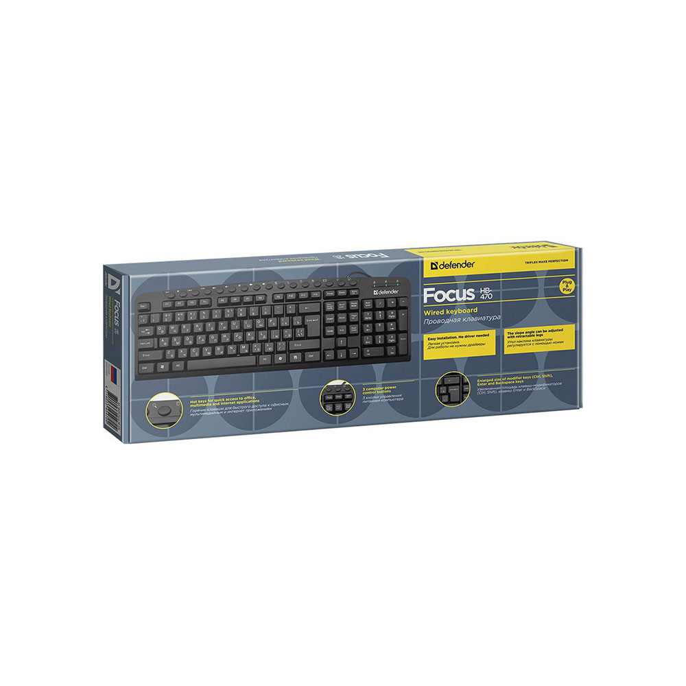Клавиатура проводная Defender Focus HB-470 RU/ENG,черный,мультимедиа, НОВИНКА!