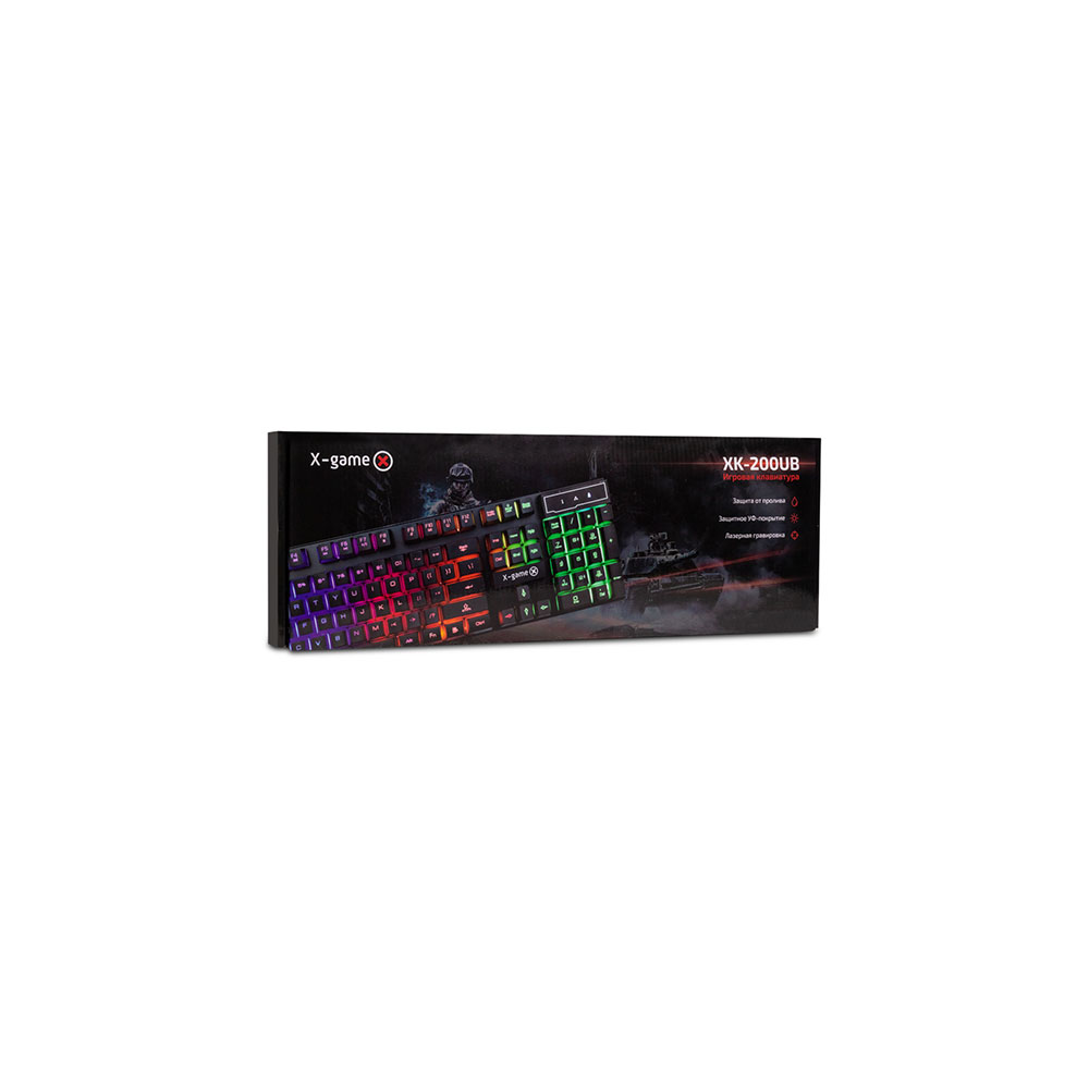 Клавиатура, X-Game, XK-200UB, USB, Кол-во стандартных клавиш 104, Размер: 439.2 x 141.5 x 25.5 мм., Длина кабеля 1,45 метра, Анг/Рус/Каз, Чёрная