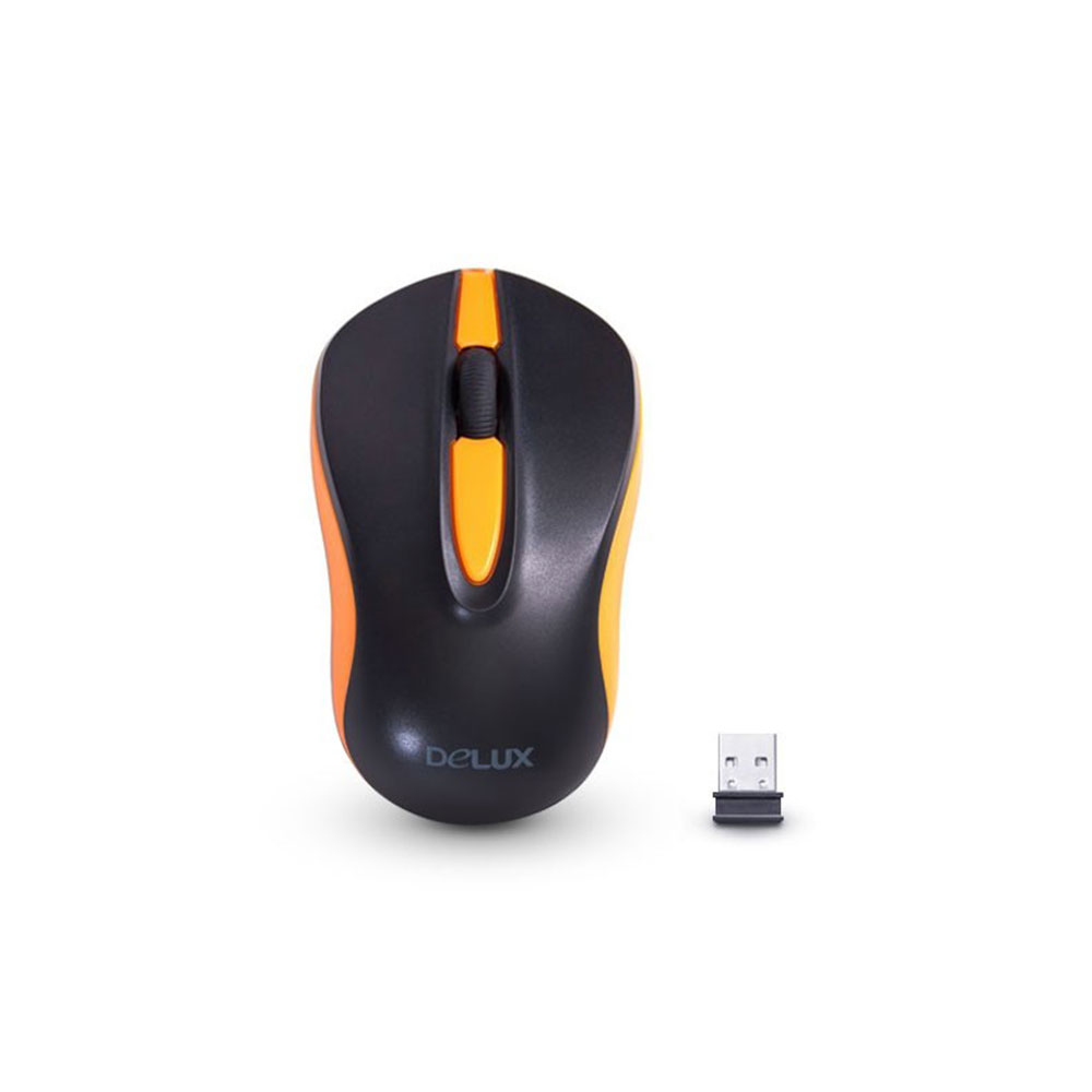 Компьютерная мышь, Delux, DLM-137OGB, 3D, Оптическая, 1000dpi, Беcпроводная 2.4ГГц, Нано-ресивер, Эффективная дистанция 10 м., Батарейки в комплекте, Размер: 102,5*61,1*40,85 мм., Чёрный