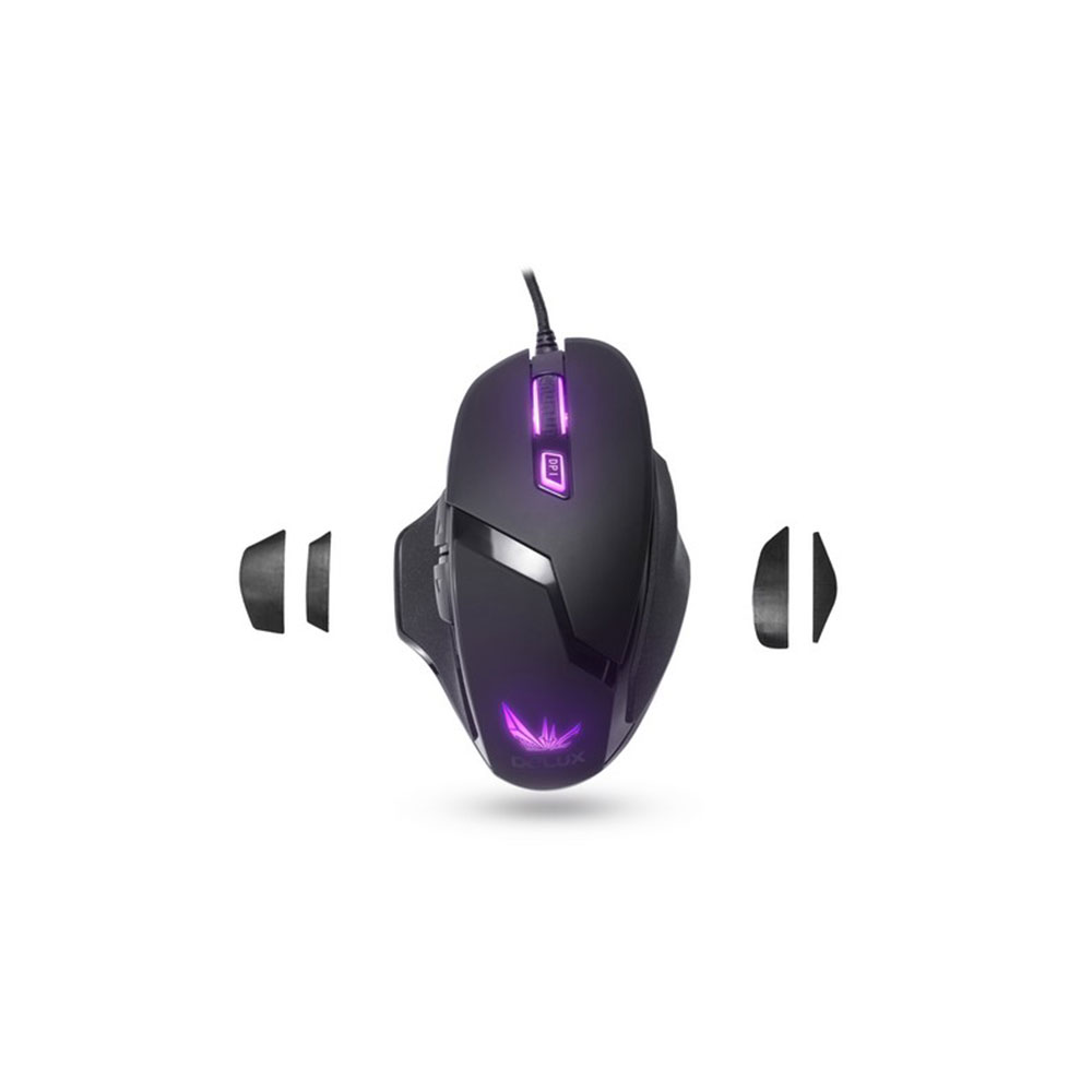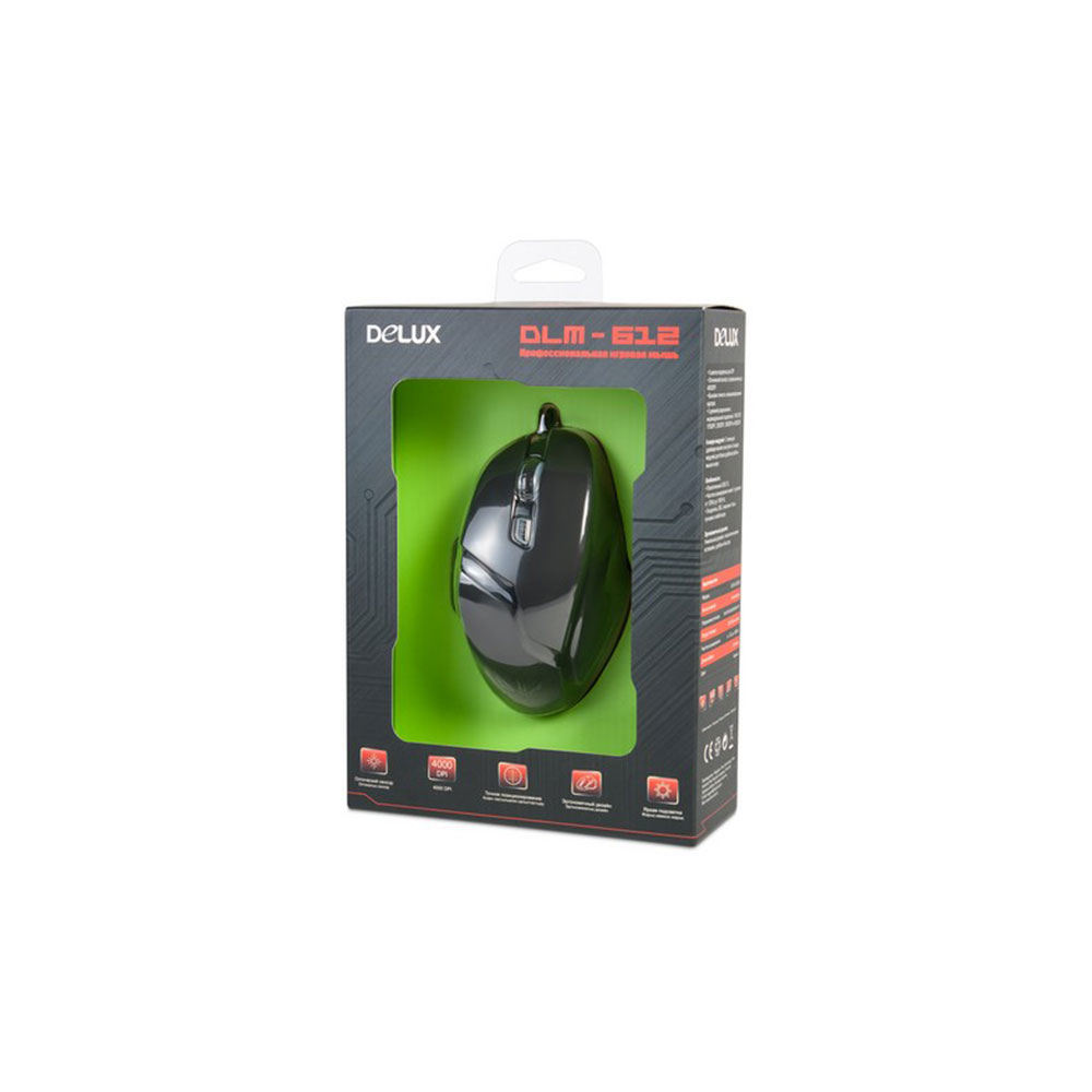 Компьютерная мышь, Delux, DLM-612OUB, Игровая, Оптическая, 1000-4000dpi, Позолоченный кабель в тканевой оплётке, 6 макромодулей, Частота сканирования до 1000Hz, Длина кабеля 1,6 метра, Размер: 126,3*84,4*45 мм, Чёрный