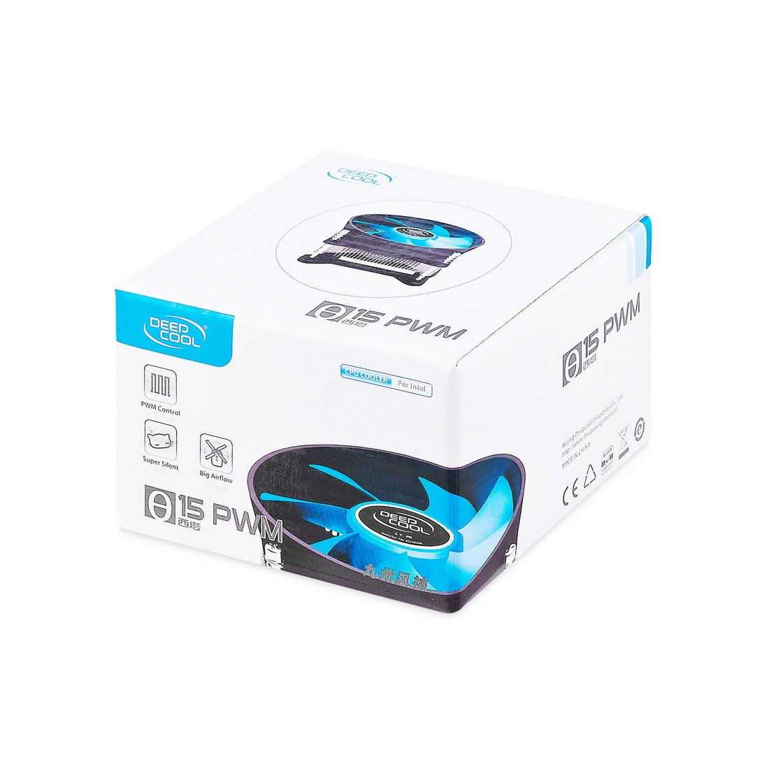Кулер для процессора Intel, Deepcool, THETA 15 PWM DP-ICAS-T15P, Intel 1200/115х, 95W, 100мм, 800- 2800±10% об/м, 50.25CFM, 17.8~36.0dB(A), 4pin, 97,5х97,5х46мм, Чёрный