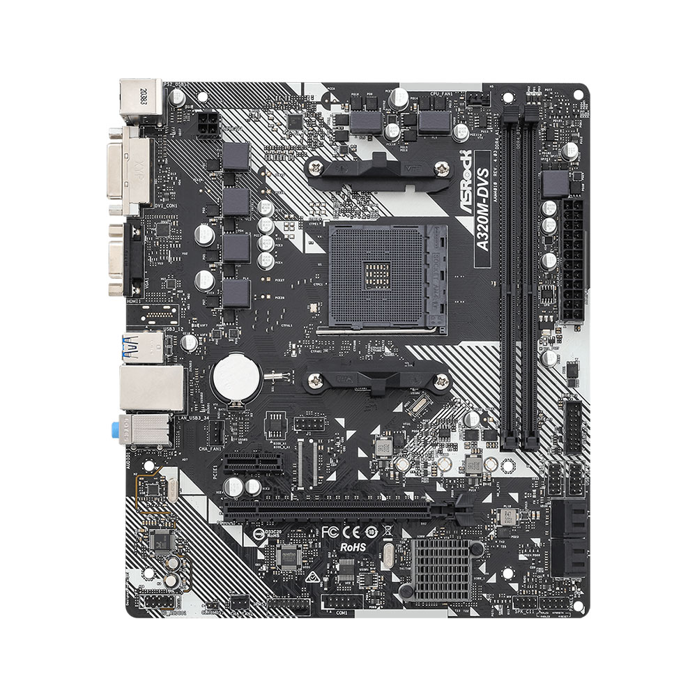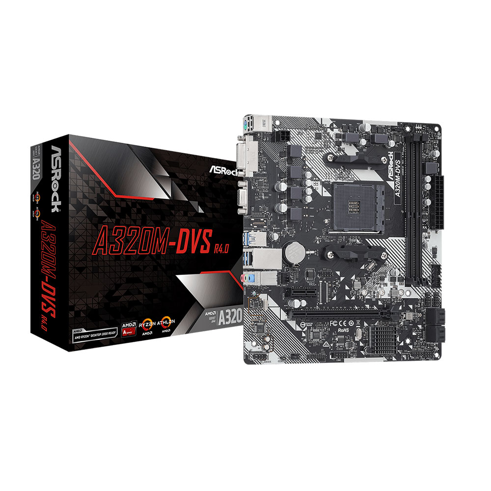 Материнская плата ASRock A320M-DVS R4.0 AM4 2xDDR4 4xSATA3 RAID D-Sub DVI mATX