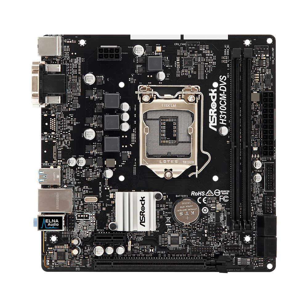 Материнская плата ASRock H310CM-DVS MB Socket1151, MATX, iH310 (D-Sub+DVI, GNIC), 2DDR4, 1PCIx16, 1PCIx1