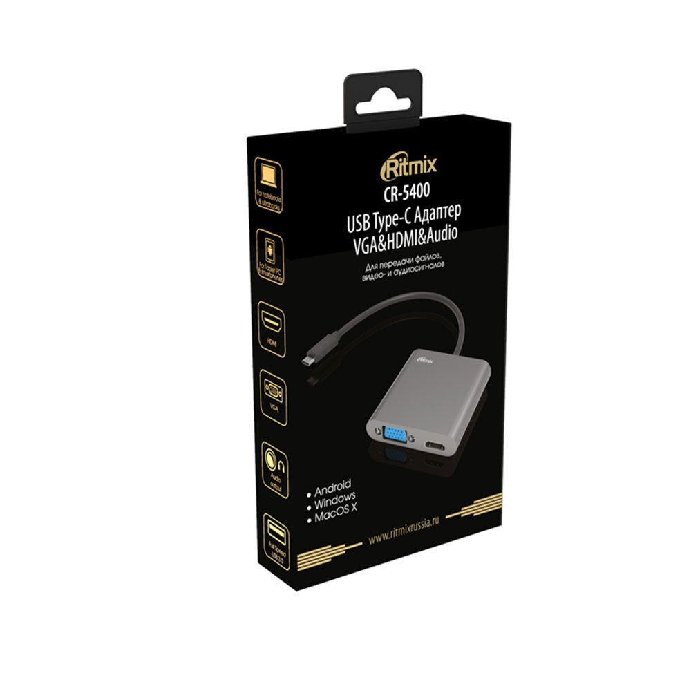Мультиадаптер Ritmix CR-5400, Черный USB Type-C HDMI&VGA&Audio VGA/HDMI/Audio/USB, black
