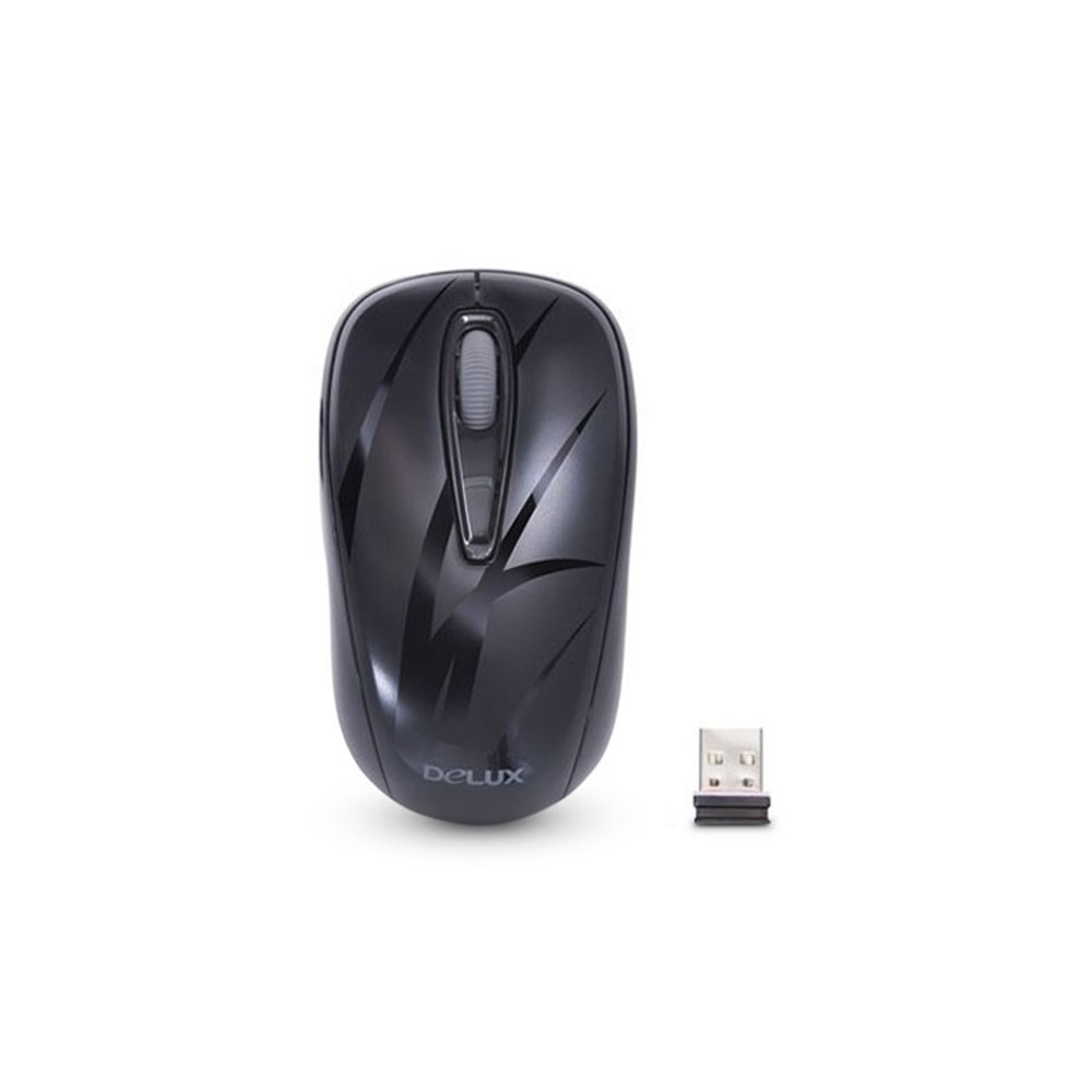 Мышь, Delux, DLM-107OGB, 3D, Оптическая, 1000dpi, Беcпроводная 2.4ГГц, Нано-ресивер, Эффективная дистанция 10 м., Батарейки в комплекте, Размер: 103,6*58,1*38,1 мм., Чёрный