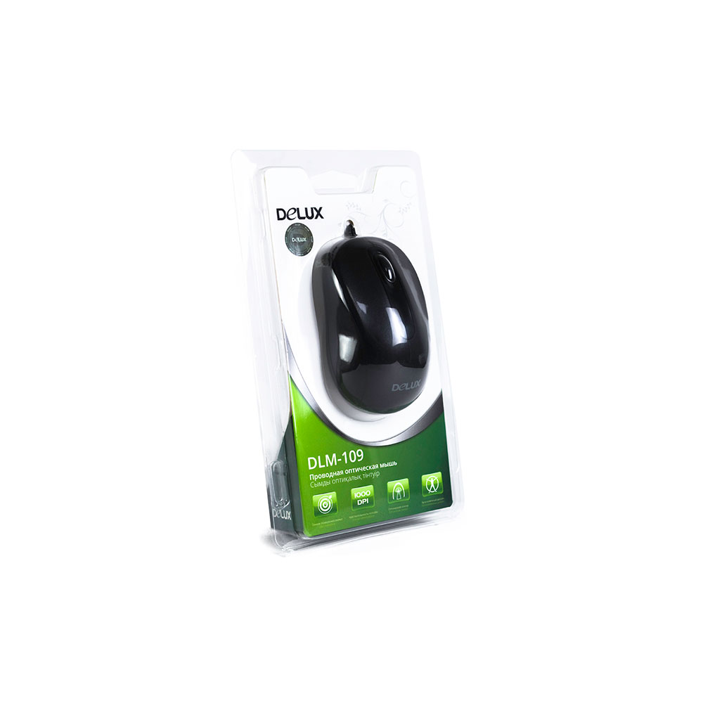 Мышь, Delux, DLM-109OUB, Оптическая, USB, 1000 dpi, Длина кабеля 1,6м, Чёрный