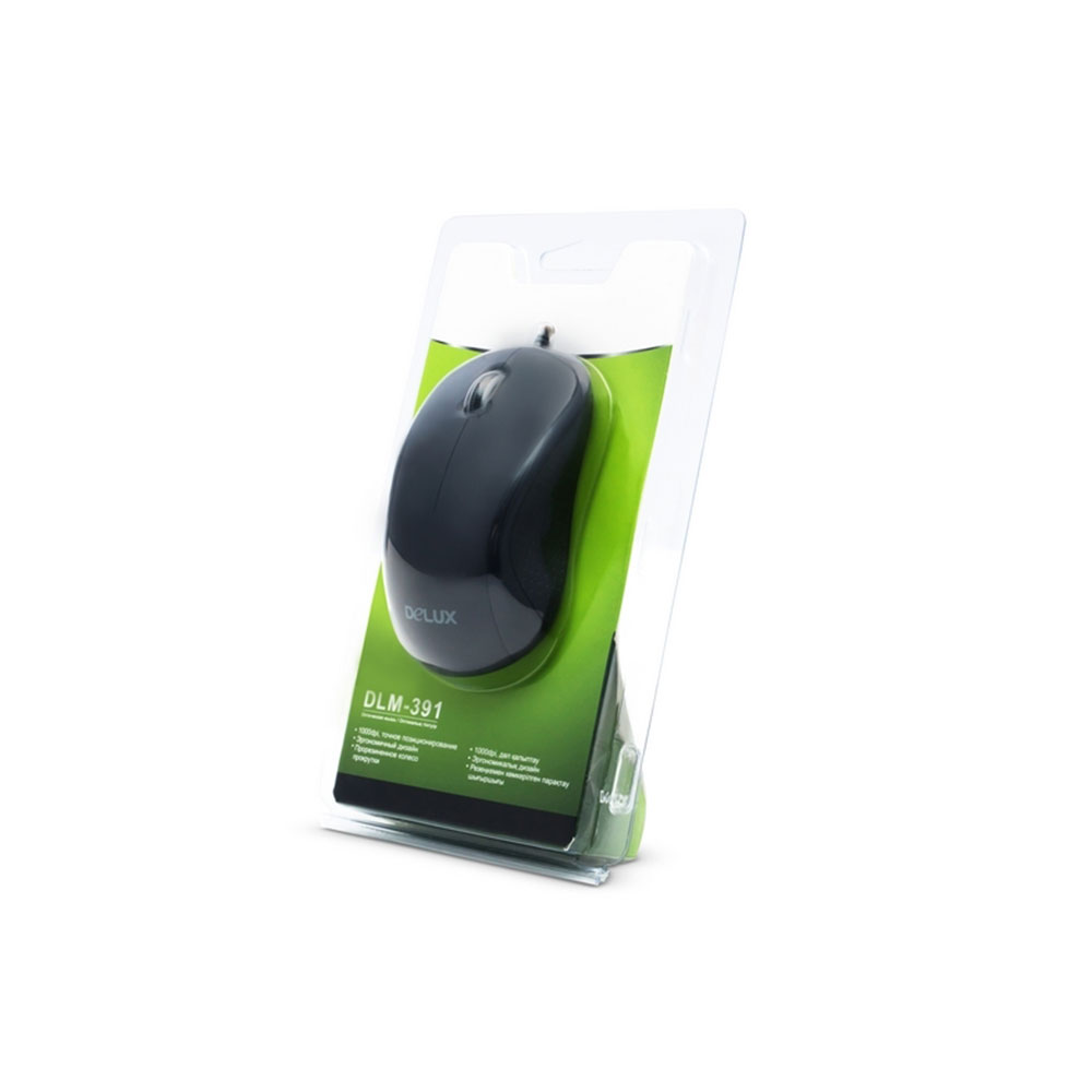 Мышь, Delux, DLM-391OUB, 3D, Оптическая, 1000dpi, USB, Длина кабеля 1,6 метра, Размер: 111,6*61,95*39мм., Чёрный