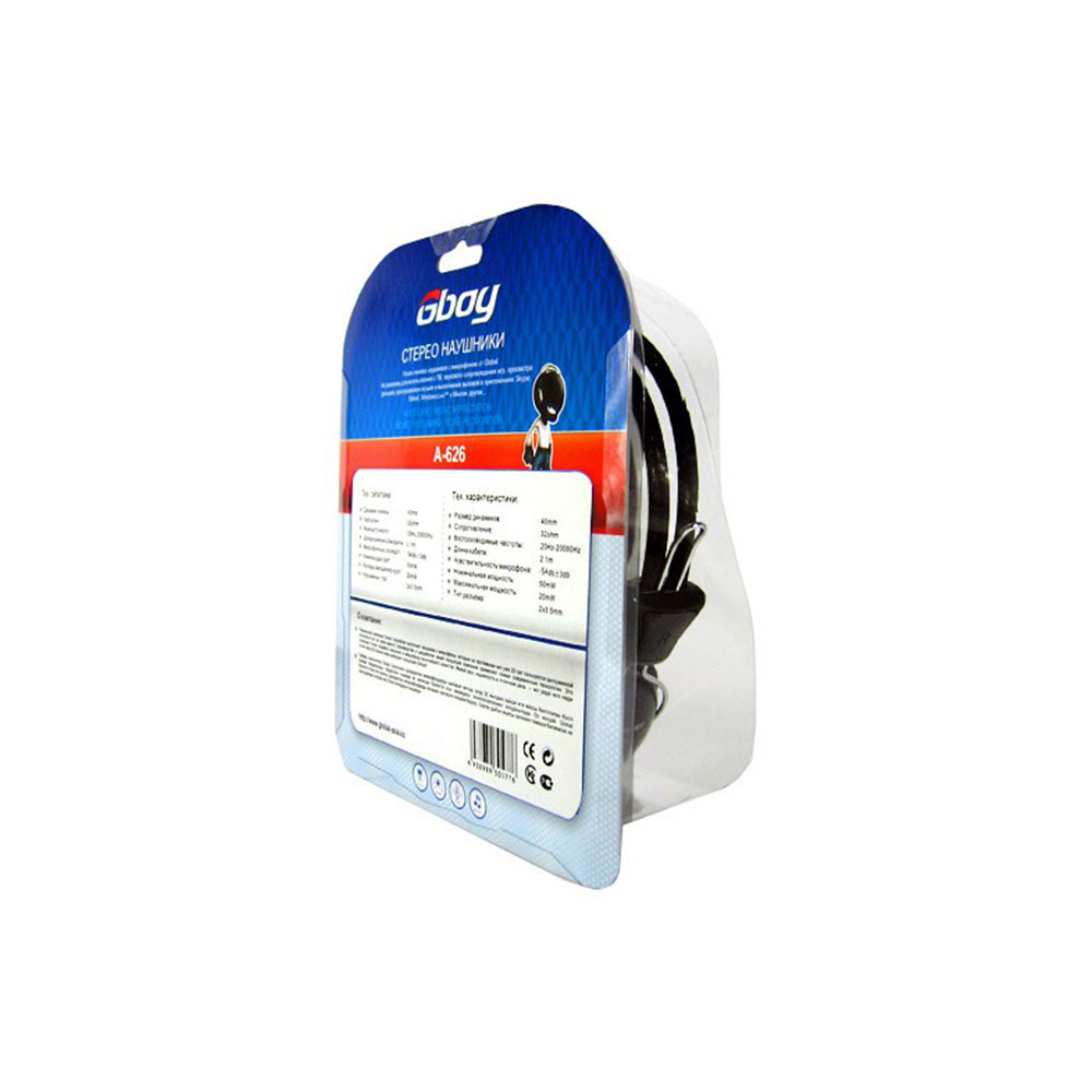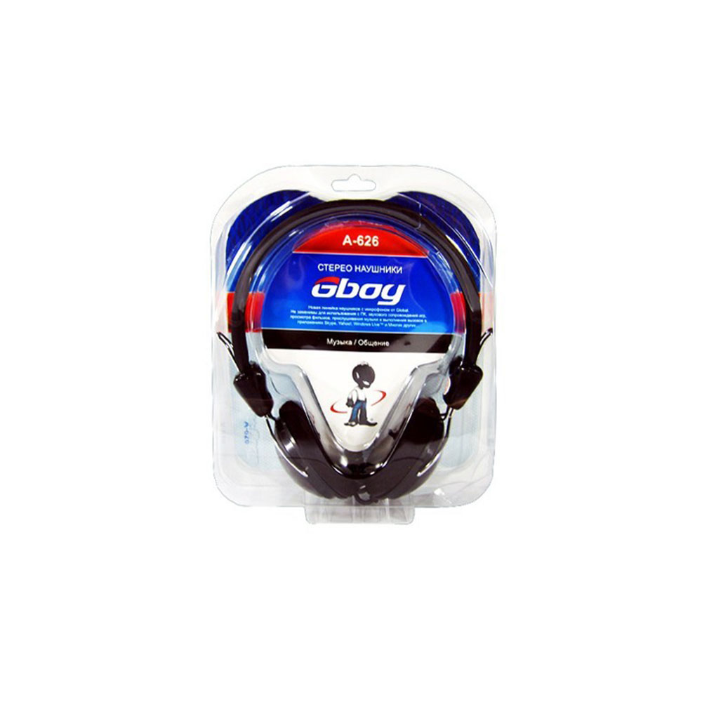 Наушники, Global, A-626, Микрофон, Чёрный, Тип крепления: Дуговые