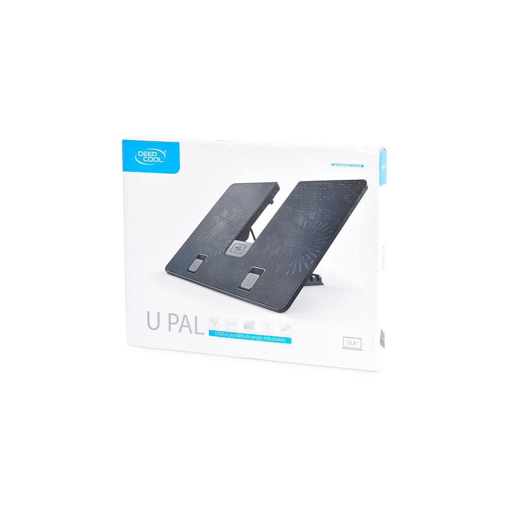 Охлаждающая подставка для ноутбука, Deepcool, U PAL DP-N214A5_UPAL, 15.6″, Вентилятор 2*14см, 1000±10%RPM, Сквозной USB 2.0, 26,3дБл, Габариты 390х280х27,5мм, Чёрный