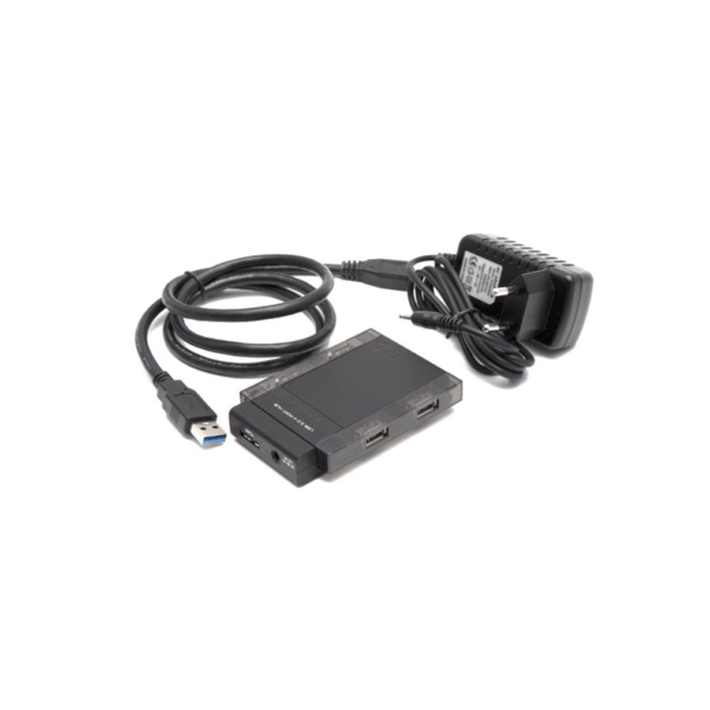 Расширитель USB, Deluxe, DUH4006BK, 4 Порта, USB 3.0 Hi-Speed, Дополнительное питание, Чёрно-Серый