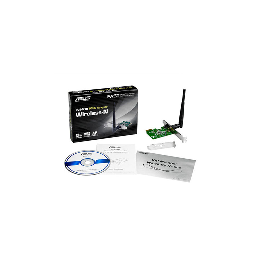 Сетевой адаптер, ASUS, PCE-N10, 2,4ГГц, 150 Мбит/с, 18.5 dBm, 1x R SMA внешняя антенна