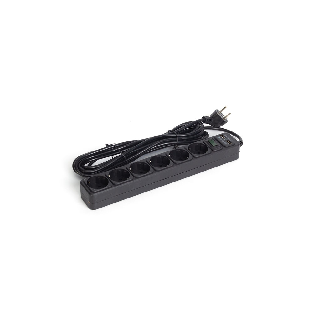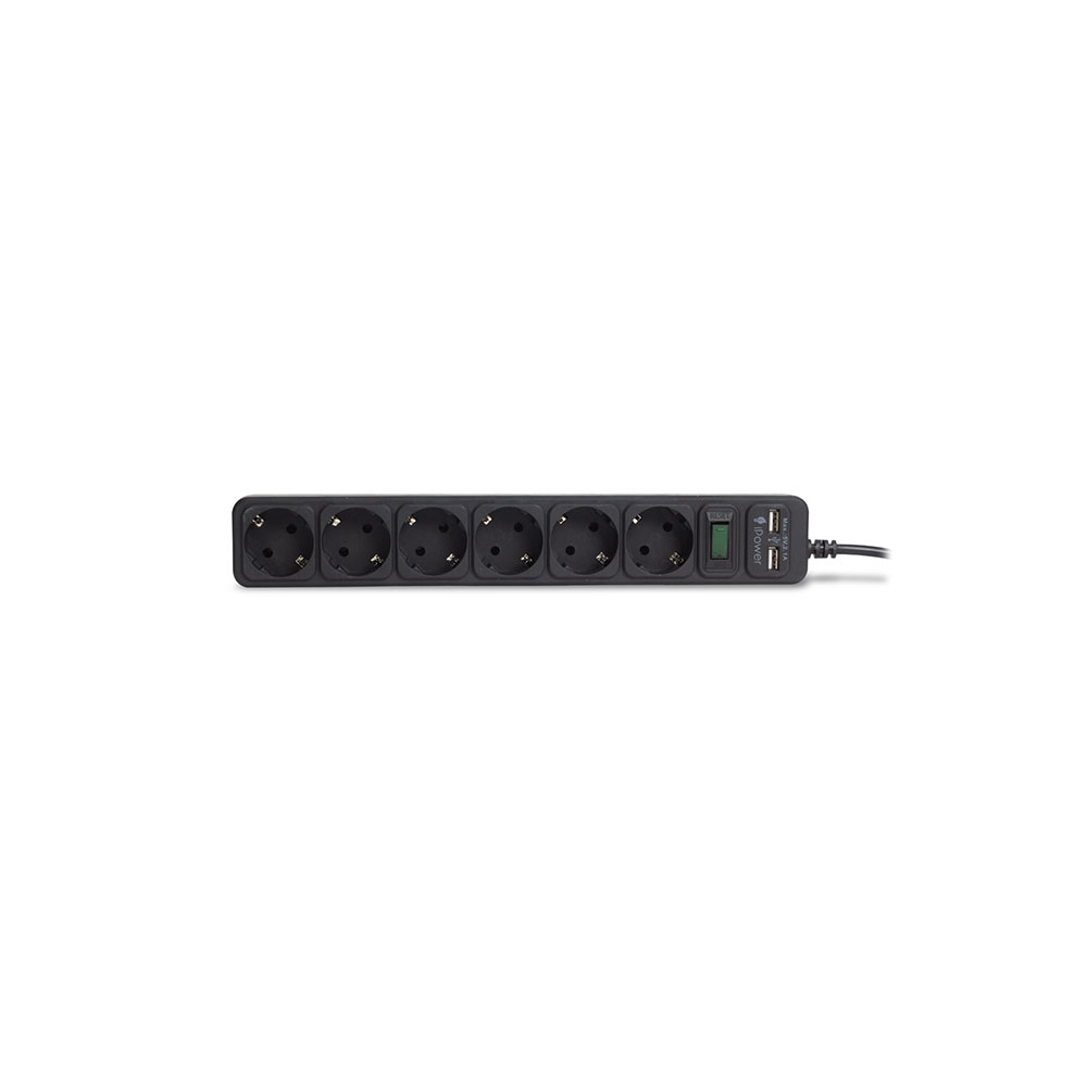 Сетевой фильтр, iPower, iPEO3m-USB, 6 розеток, 3 метра. Два USB-порта, 220-240V, 10A, Чёрный