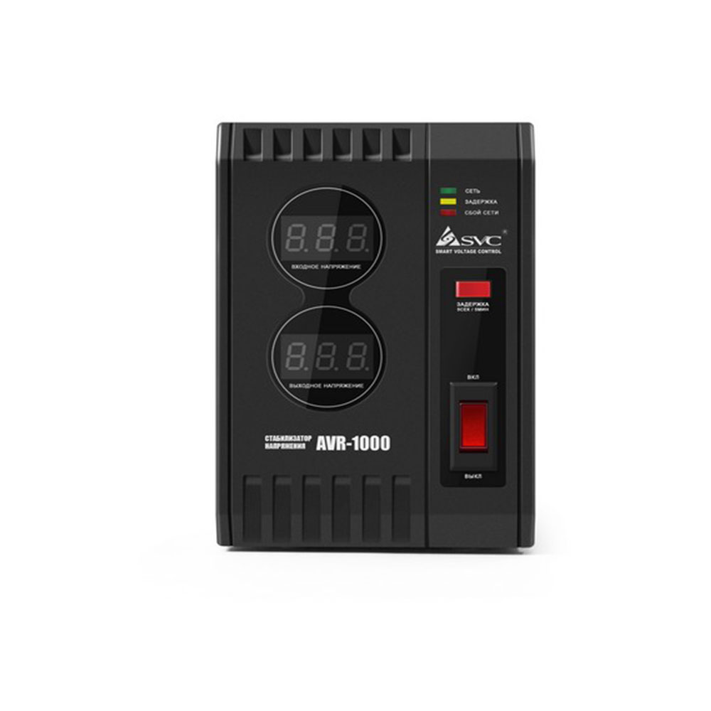 Стабилизатор (AVR), SVC, AVR-1000, Мощность 1000ВА/1000Вт, LED-индикаторы, Диапазон работы AVR: 140-280В, 2 вых., 1.2 м., Чёрный
