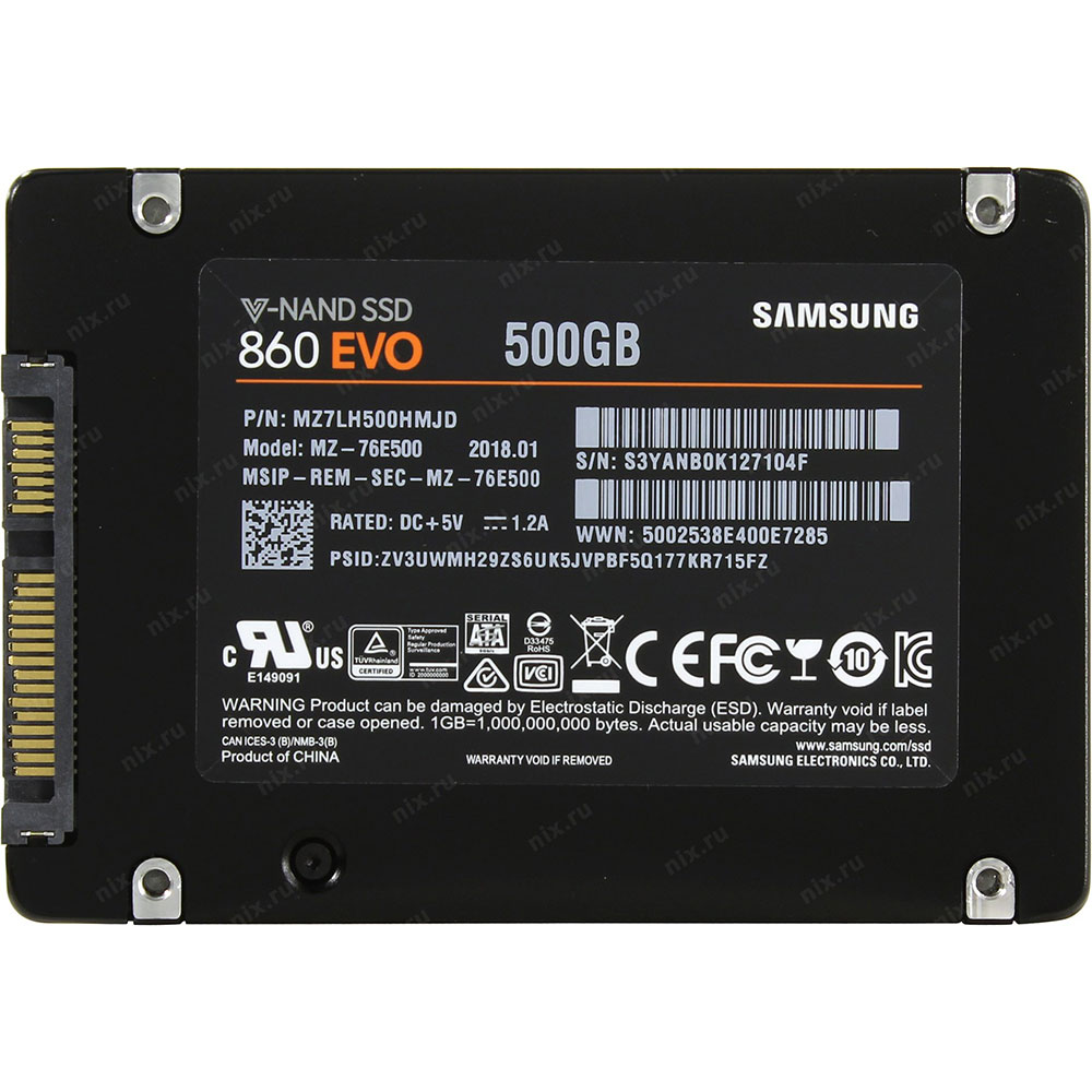 Твердотельный накопитель SSD Samsung 860 EVO, 500 GB SATA MZ-76E500BW, SATA 6Gb/s, 7mm