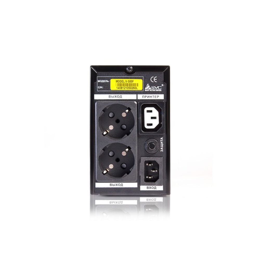UPS, SVC, V-500-F, Диапазон работы AVR: 165-275В, Бат.: 12В/4.5 Ач*1шт., 3 вых.: 2 Shuko CEE7+1 IEC C13 (Bypass), Чёрный