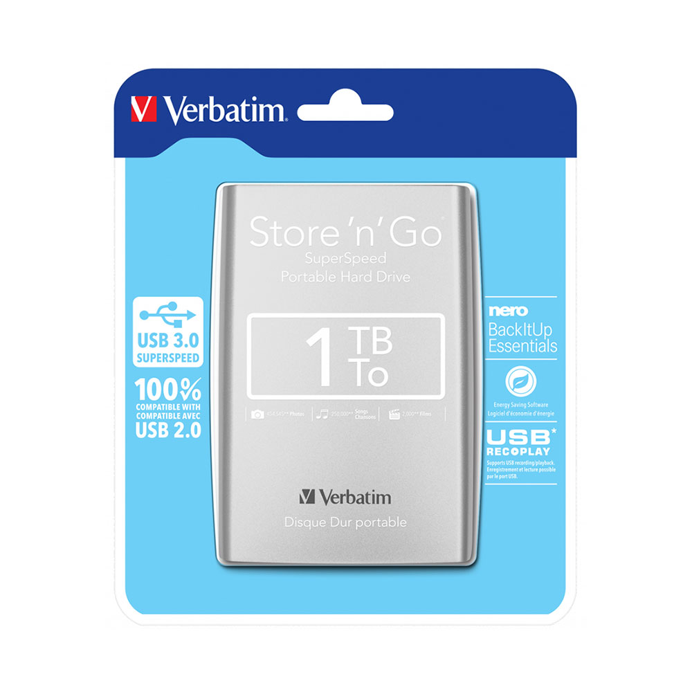 Внешний жёсткий диск, Verbatim, Store ‘n’ Go, 53071, 1TB, 2.5″, USB 3.0, Серебристый