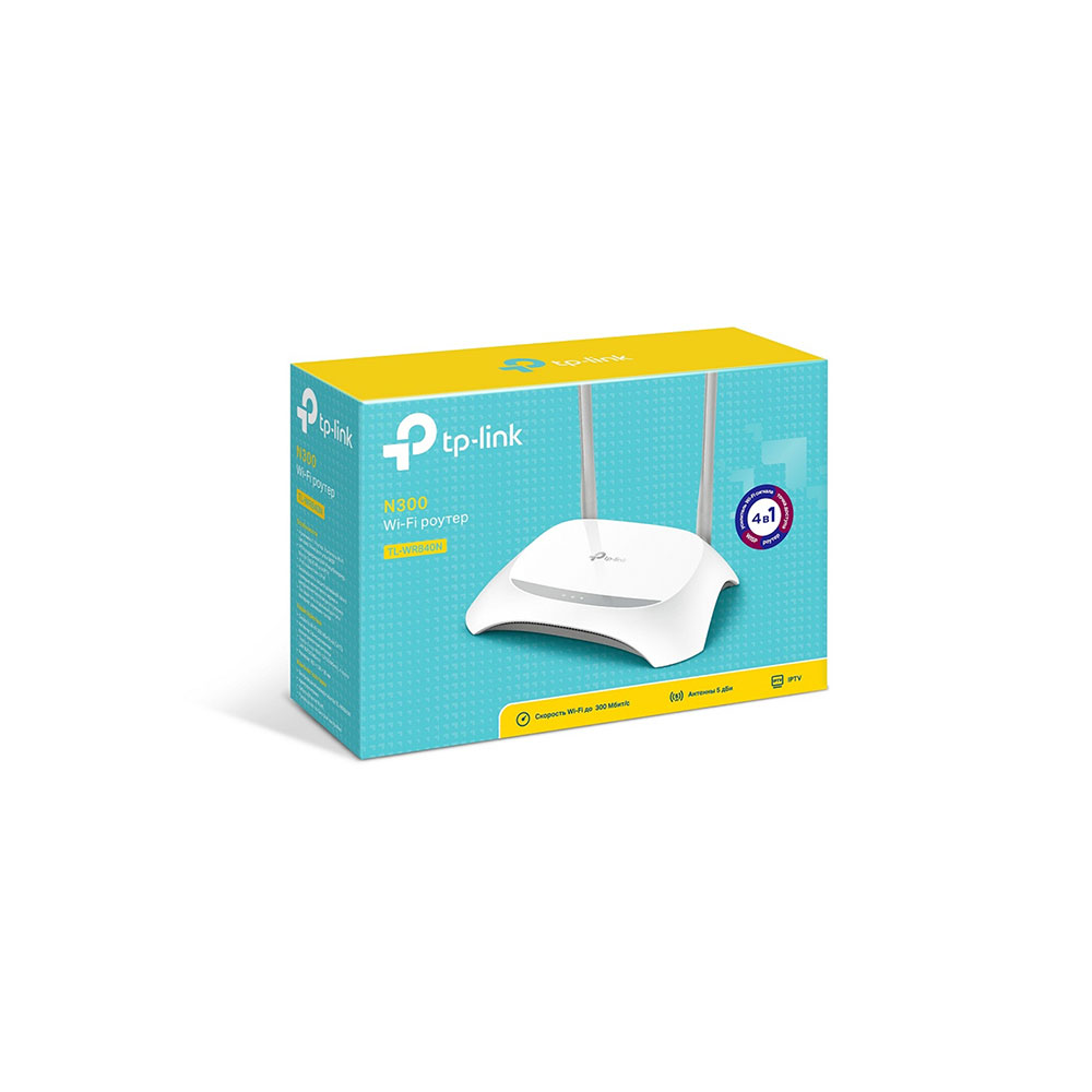 Wifi Роутер TP-Link TL-WR840N(RU) Ver.2, 300 Мбит/с 2,4 ГГц, 802.11b/g/n, 1xWAN + 4x LAN
