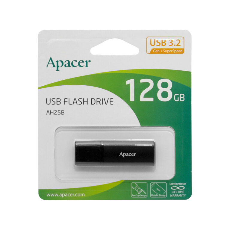 Флешка USB Apacer AH25B, 128GB, Черный flash AP128GAH25BB-1, USB 3.2, black
